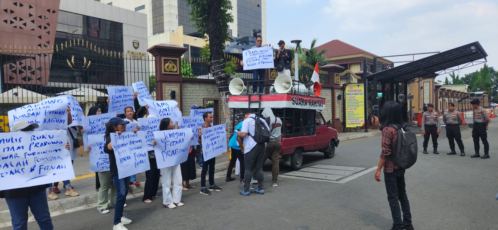 HARNAS.CO.ID – Kesatuan Aksi Pemuda & Mahasiswa Pendukung (KAPMP) Prabowo -Gibran menggelar aksi demonstrasi di Mabes Polri, Jalan Trunojoyo, Kebayoran Baru, Jakarta Selatan.