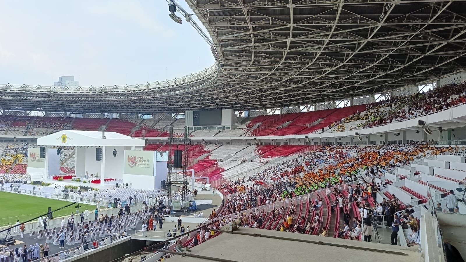 HARNAS.CO.ID – Ribuan jemaat Katolik mulai memasuki Stadion Utama Gelora Bung Karno, Senayan, Jakarta Pusat, Kamis (5/9/2024). Mereka datang untuk mengikuti misa yang akan dipimpin Paus Fransiskus pada pukul 17.00 WIB.