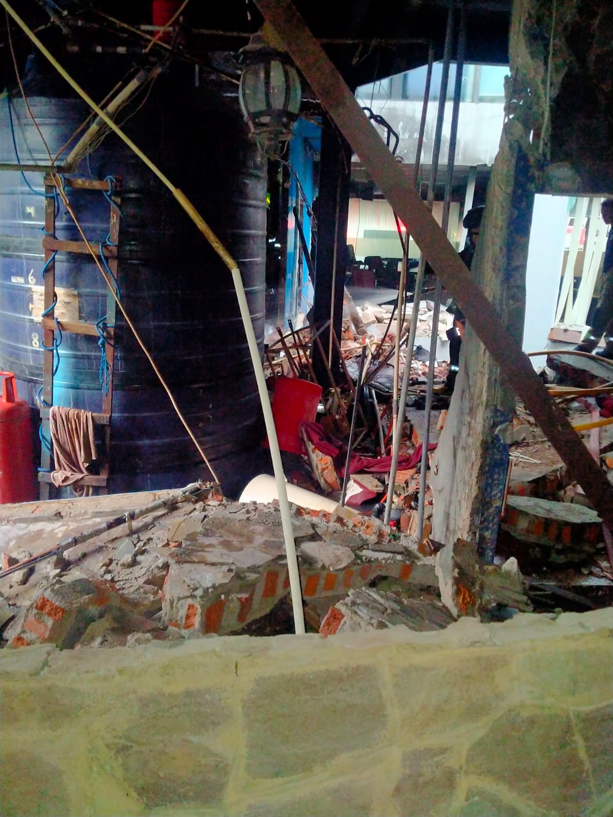 Tak lama, terjadi ledakan sebanyak satu kali dari ruang mesin sauna. Menurut Nurma, empat orang pekerja mengalami luka-luka. Keempat korban luka yaitu I (kapten) patah kako tertimpa tembok, M (teknisi) luka bakar sekujur tubuh, A (petugas keamanan) luka sobek kaki dan kepala, serta P (terapis) luka sobek kaki dan leher akibat pecahan kaca.