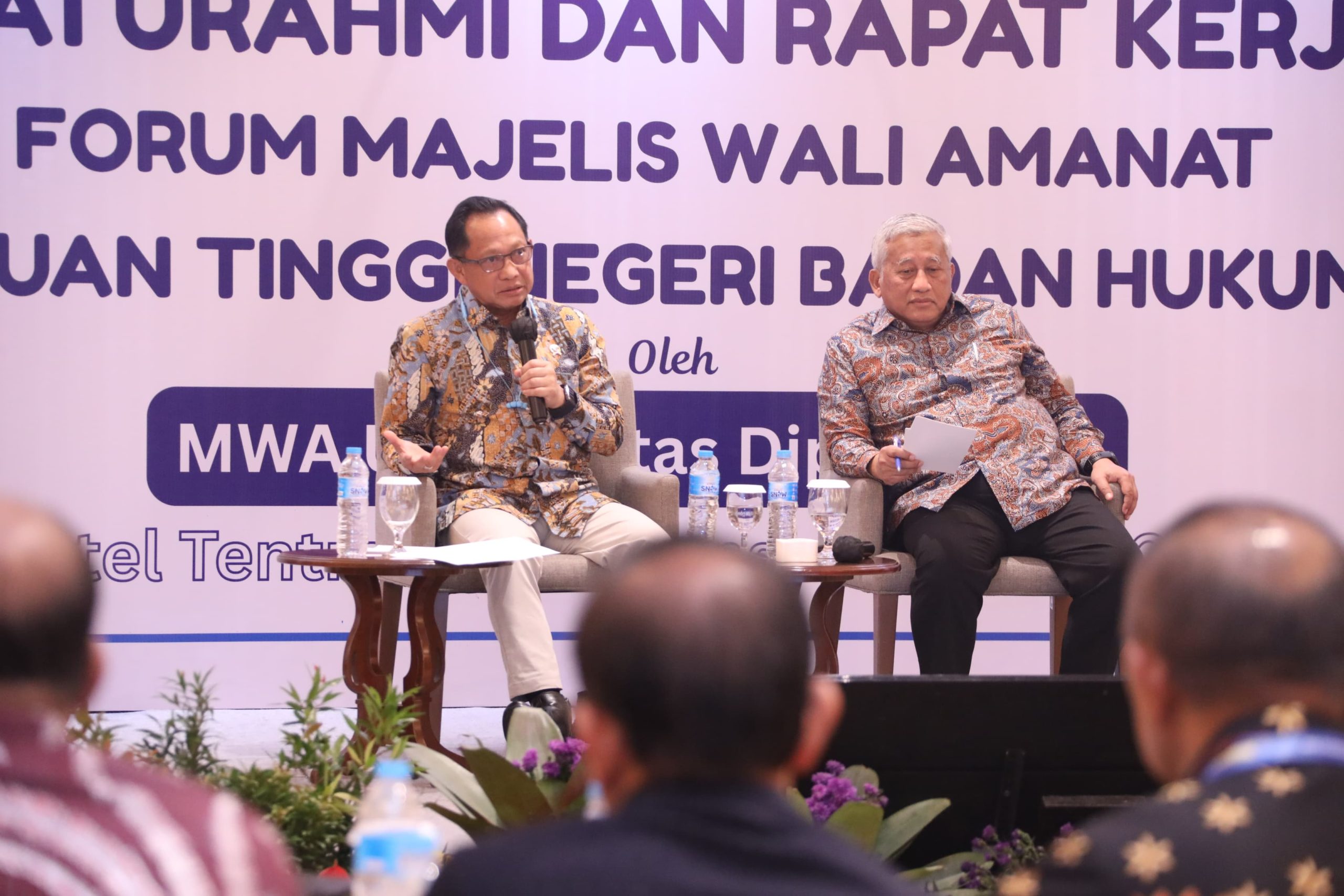 HARNAS.CO.ID – Menteri Dalam Negeri (Mendagri) Muhammad Tito Karnavian mengingatkan pemerintah daerah (pemda) tidak ragu mendukung pengembangan Perguruan Tinggi Negeri Berbadan Hukum (PTN-BH). Sebab, kebijakan ini elah memiliki dasar hukum jelas, di antaranya Undang-Undang (UU) Nomor 12 Tahun 2012, UU Nomor 23 Tahun 2014, Peraturan Pemerintah (PP) Nomor 12 Tahun 2019, serta Peraturan Menteri Dalam Negeri (Permendagri) Nomor 77 Tahun 2020.
