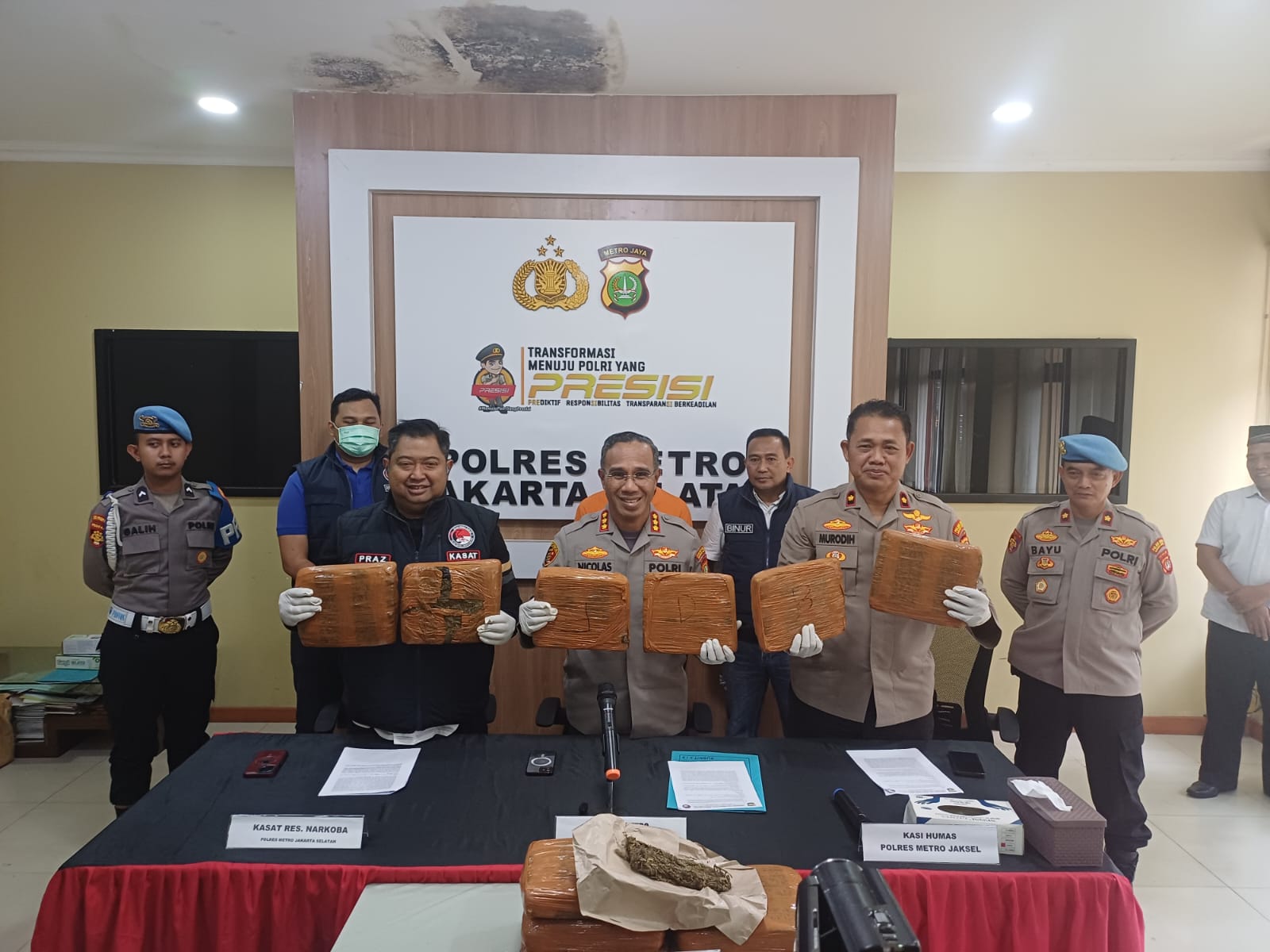 “Dari situ anggota (Satresnarkoba Polres Metro Jaksel melakukan penyelidikan dan akhirnya mendapatkan informasi alamat rumah dari tersangka ternyata berada di kawasan Pondok Cabe Ilir, Tangsel,” ujar Nicolas.