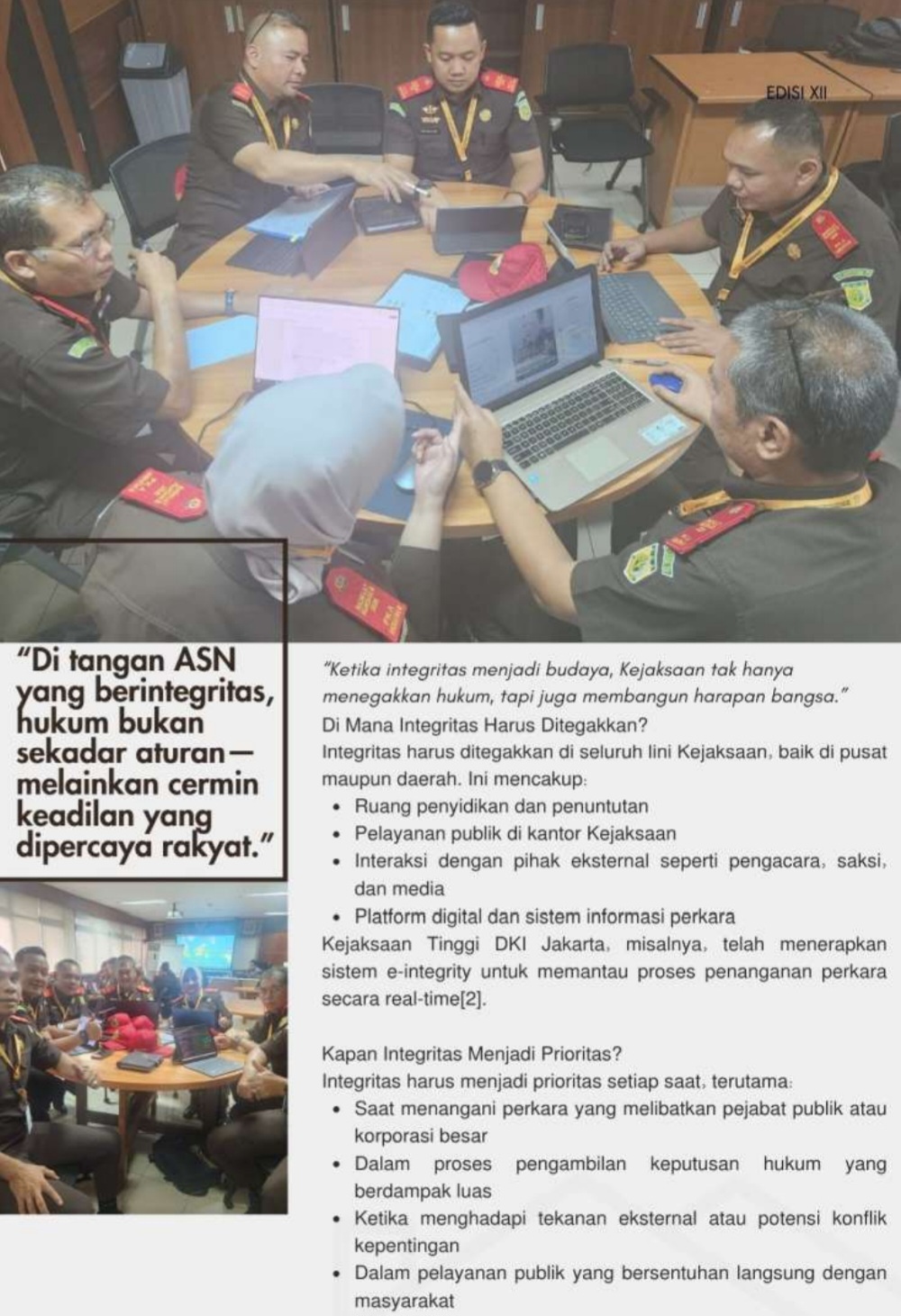 Dalam upaya menjaga integritas, seluruh lapisan ASN Kejaksaan — mulai dari jaksa fungsional hingga pejabat struktural — dituntut untuk menjadikan integritas sebagai budaya kerja.