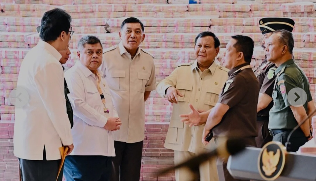 Presiden Prabowo tiba di Kejaksaan Agung pukul 11.00 WIB dan langsung berdialog dengan Jaksa Agung serta Jampidsus Febrie Adriansyah di depan tumpukan uang hasil sitaan yang dipamerkan terpampang.